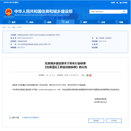 住建部印發(fā)《垃圾清運工職業(yè)技能標準》
